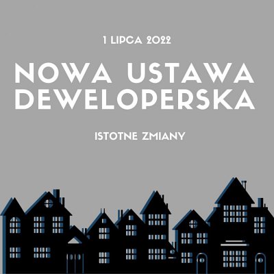 W dniu 1 lipca 2022r. weszła w życie tzw. "Nowa ustawa deweloperska", wprowadzająca daleko idące zmiany mające na celu ochronę pozycji nabywców lokali mieszkalnych i domów jednorodzinnych. Nowe przepisy zastępują dotychczasową ustawę.