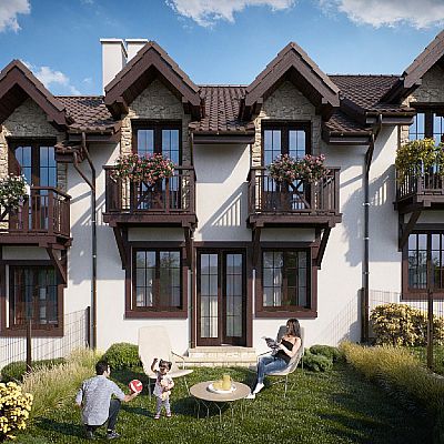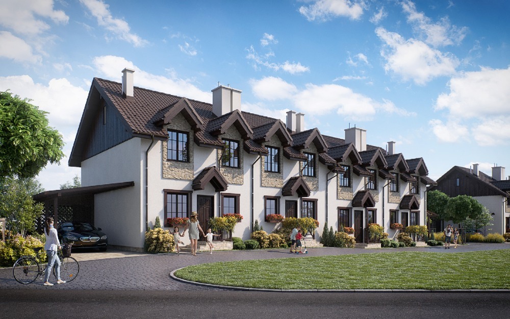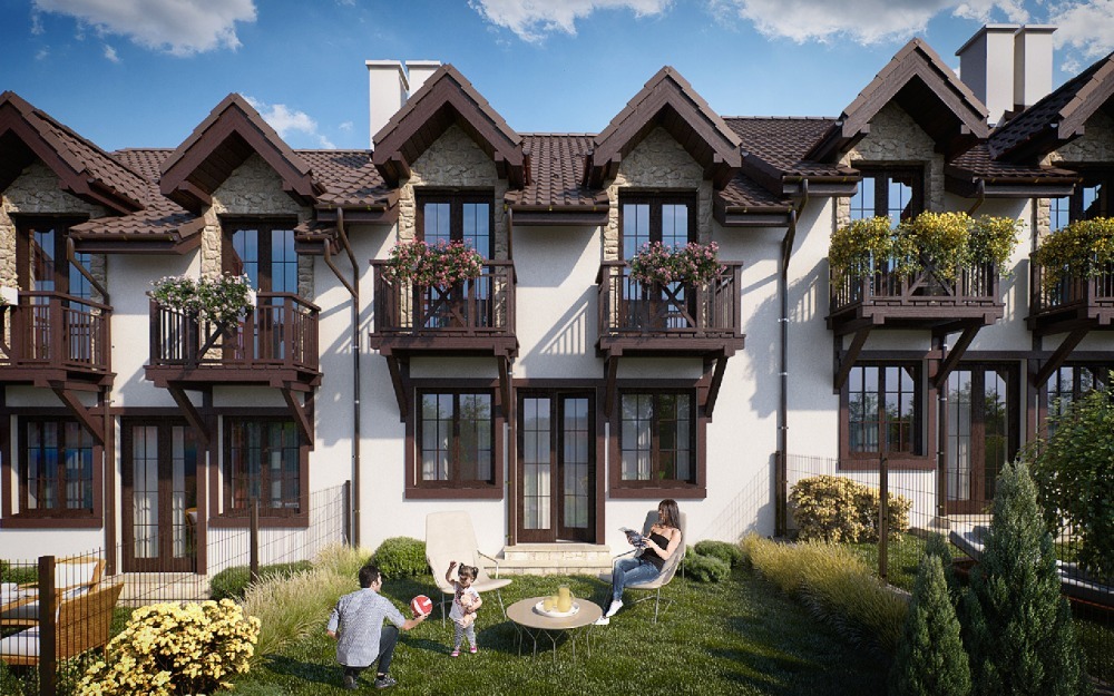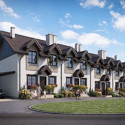 Nowoczesne domy budowane w wysokim standardzie wykonania. Dużym atutem każdego domu są jasne i doświetlone wnętrza. Powierzchnia użytkowa każdego domu to 89,46 m2, składające się z 2 kondygnacji. Każdy dom z ogródkiem od 30m2 do 50m2.