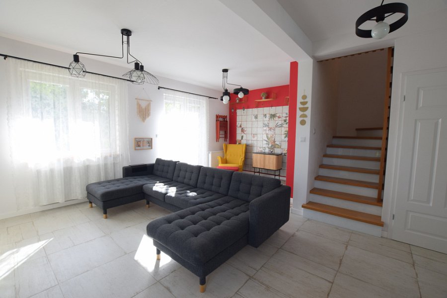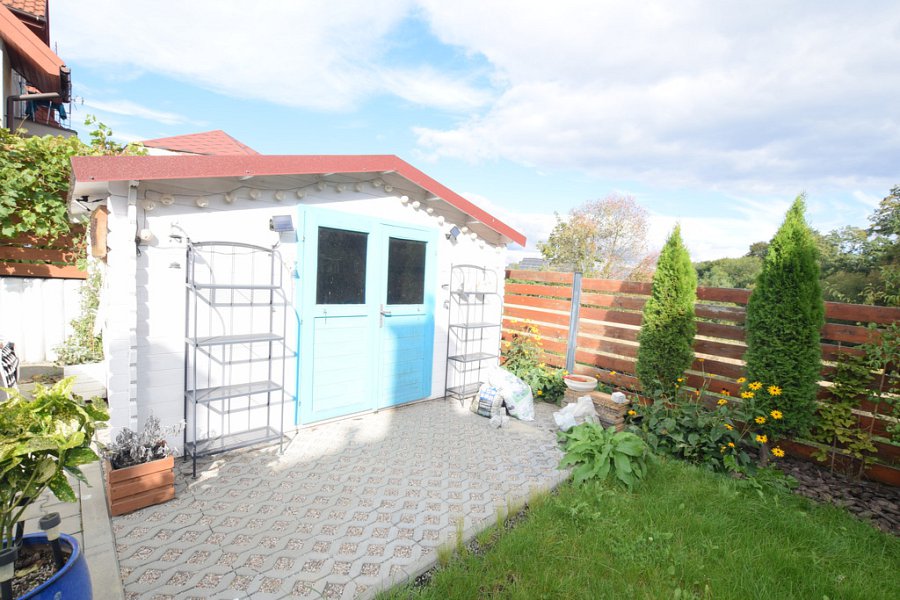 Na sprzedaż dwupoziomowy dom z pięknie zagospodarowanym ogrodem.