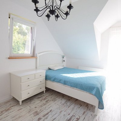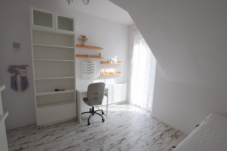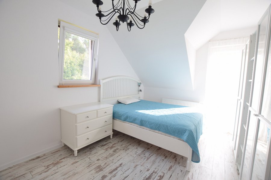 Na drugiej kondygnacji znajdują się trzy sypialnie oraz łazienka.