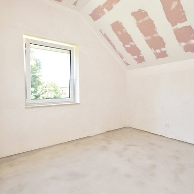 Piętro: trzy wygodne sypialnie, łazienka, pomieszczenie gospodarcze