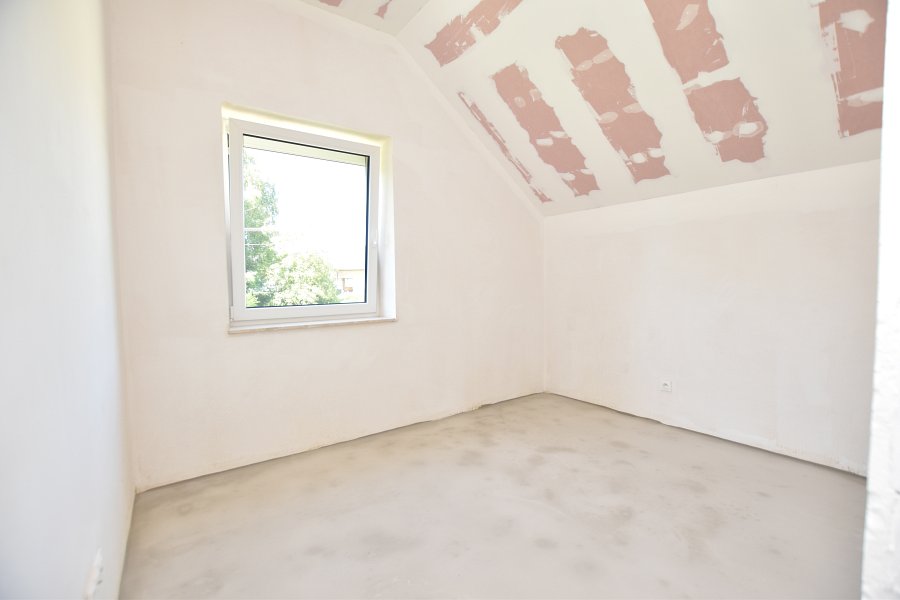 Parter: przestronny salon z wyjściem na ogród, kuchnia, WC, kotłownia