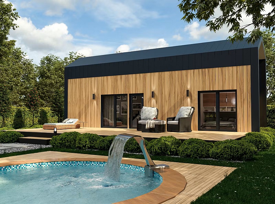 Projekt domu idealny dla miłośników tradycyjnej formy. Stanowi mieszankę minimalizmu, prostoty i elegancji. Jego funkcjonalne wnętrze dopasowane do potrzeb domowników zapewnia komfort i swobodę. Minimalistyczny charakter domu dopełniają drewniane elementy elewacji oraz spore przeszklenia, które gwarantują przestrzeń pełną światła i nadają bryle lekkości. Kontrastującymi i przykuwającymi wzrok elementami są ciemna stolarka okienna oraz dwuspadowy dach utrzymany w zbliżonej kolorystyce.