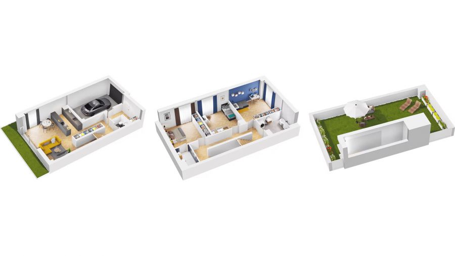 Prezentowane mieszkanie o powierzchni 124,34 m2 przynależy do domu bliźniaczego i składa się z 3 pokoi, salonu z aneksem kuchennym, 2 łazienek, osobnego wc, korytarza i wiatrołapu. Do mieszkania przynależy również garaż wewnętrzny o powierzchni 18 m2 oraz ogródek o powierzchni 113 m2.