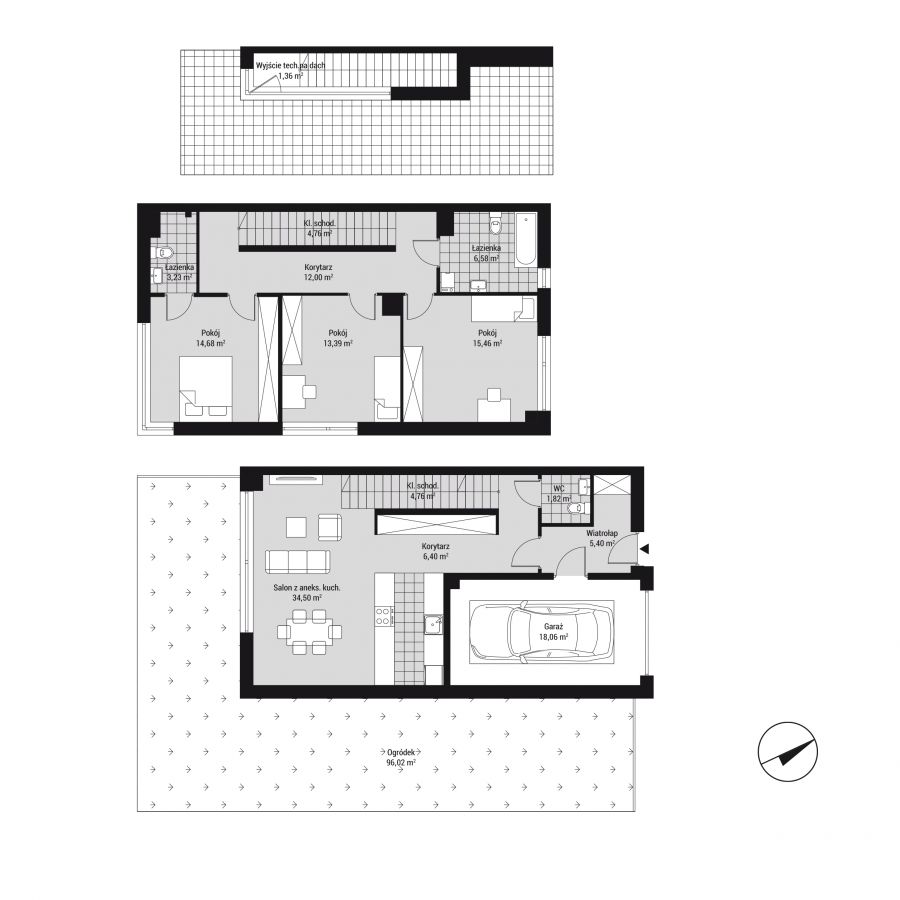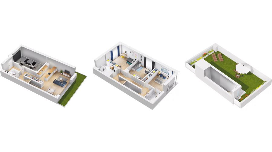 Prezentowane mieszkanie o powierzchni 124,34 m2 przynależy do domu bliźniaczego i składa się z 3 pokoi, salonu z aneksem kuchennym, 2 łazienek, osobnego wc, korytarza i wiatrołapu. Do mieszkania przynależy również garaż wewnętrzny o powierzchni 18 m2 oraz ogródek o powierzchni 96 m2.
