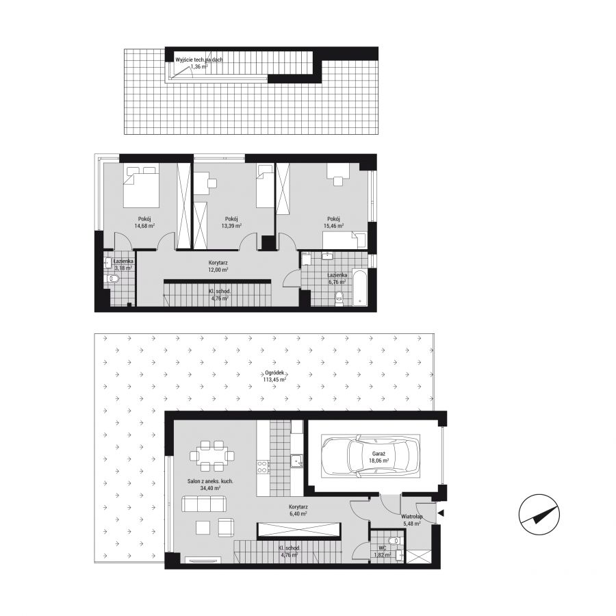 Prezentowane mieszkanie o powierzchni 124,45 m2 przynależy do domu bliźniaczego i składa się z 3 pokoi, salonu z aneksem kuchennym, 2 łazienek, osobnego wc, korytarza i wiatrołapu. Do mieszkania przynależy również garaż wewnętrzny o powierzchni 18 m2 oraz ogródek o powierzchni 113,45 m2.