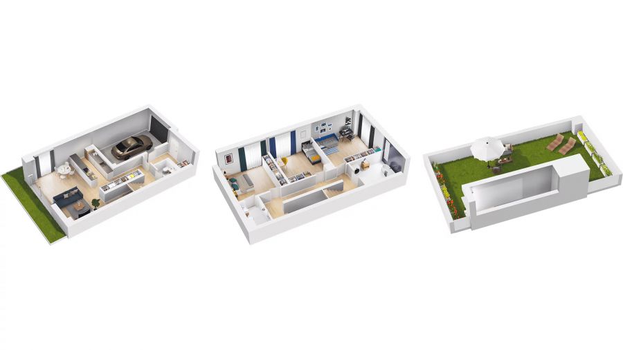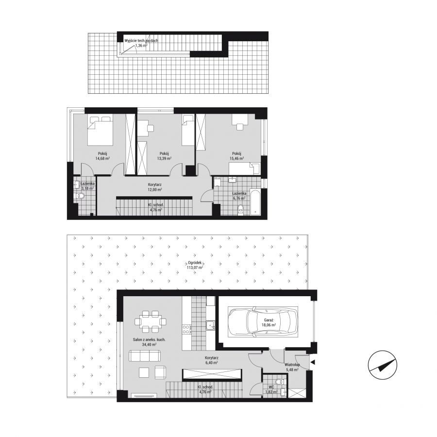 Prezentowane mieszkanie o powierzchni 124,45 m2 przynależy do domu bliźniaczego i składa się z 3 pokoi, salonu z aneksem kuchennym, 2 łazienek, osobnego wc, korytarza i wiatrołapu. Do mieszkania przynależy również garaż wewnętrzny o powierzchni 18 m2 oraz ogródek o powierzchni 113,07 m2.