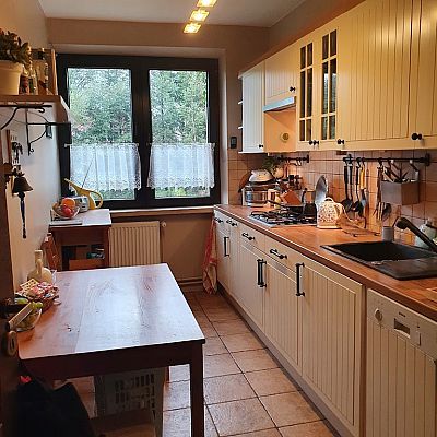 Niezależne wejścia do każdego z mieszkań oraz nie kolidujące ze sobą ogródki sprawiają, że w domu mogą zamieszkać dwie rodziny ewentualnie można użytkować część domu pod działalność gospodarczą.
