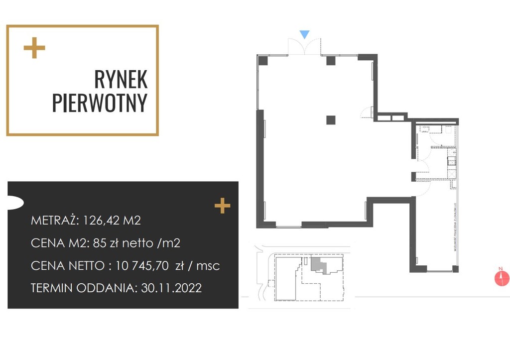 - obok dostępny również drugi lokal o pow. 120,44 m2, możliwość połączenia obu lokali