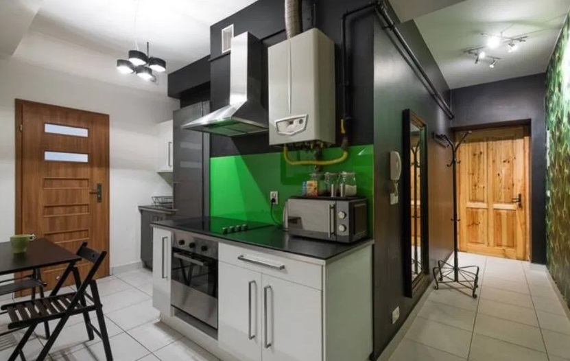 Wysokość od podłogi do sufitu to jedynie 270cm, co przeciwieństwie do większości pomieszczeni w kamienicach, pozwala na znaczne obniżenie kosztów ogrzewania (piec gazowy dwu-funkcyjny).