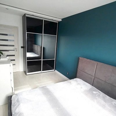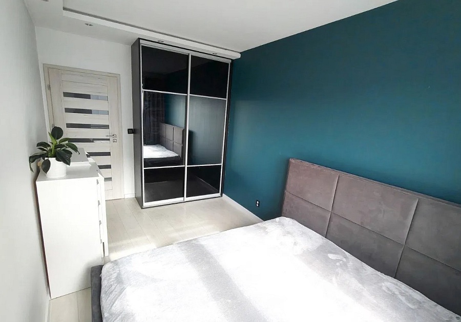 -Sypialnia wyposażona jest w: łóżko, dużą szafę.