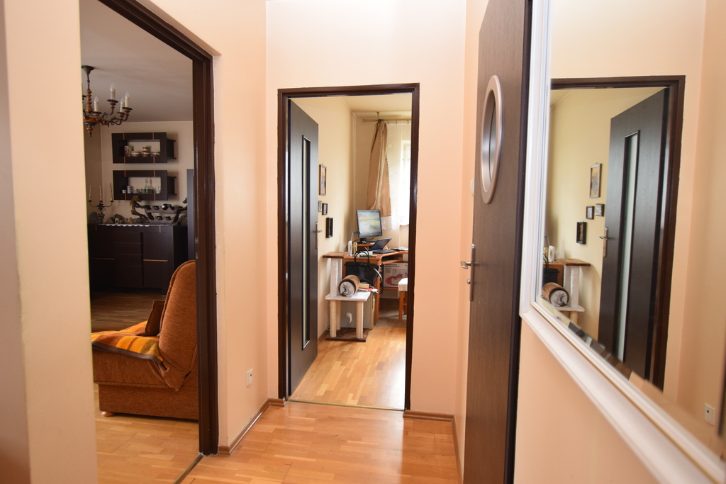 Atutem mieszkania jest przestrzenność i doświetlenie wnętrza ze względu na usytuowanie okien.