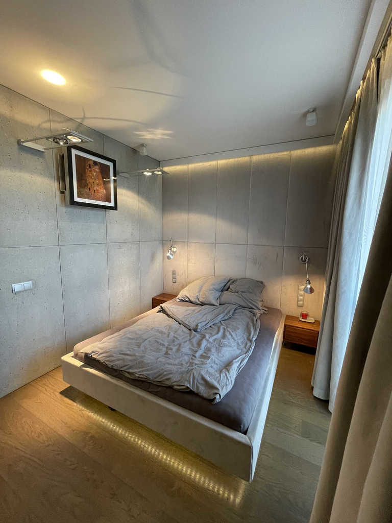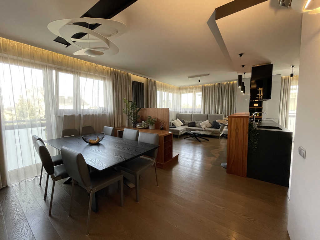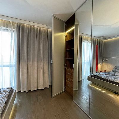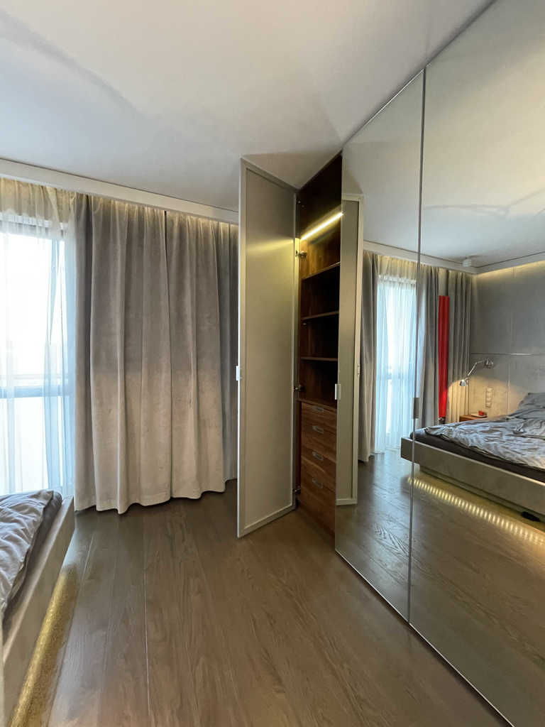 Mieszkanie jest urządzone i wyposażone w bardzo wysokim standardzie przy współpracy z projektantem wnętrza. Do całego mieszkania zaprojektowano i wykonano meble pod indywidualne zamówienie przy użyciu wysokiej jakości materiałów, które gwarantują długotrwale użytkowanie.