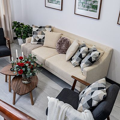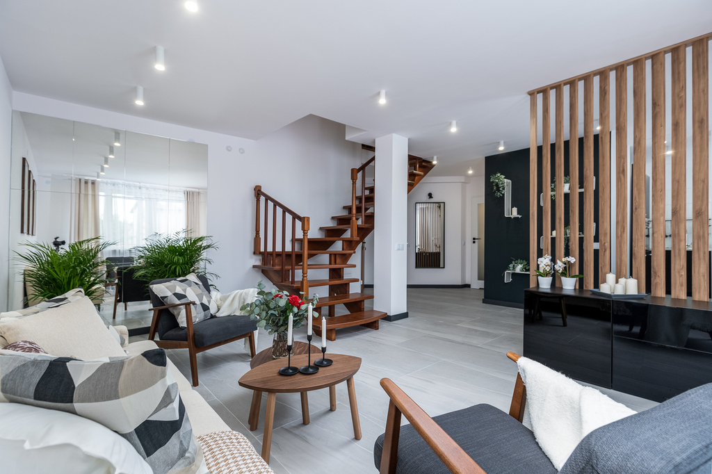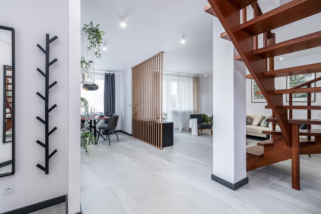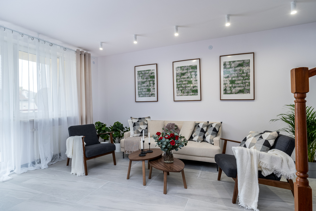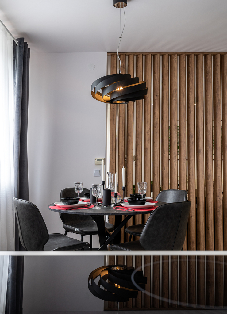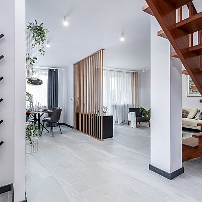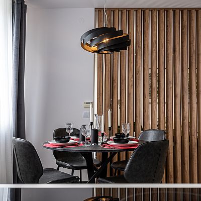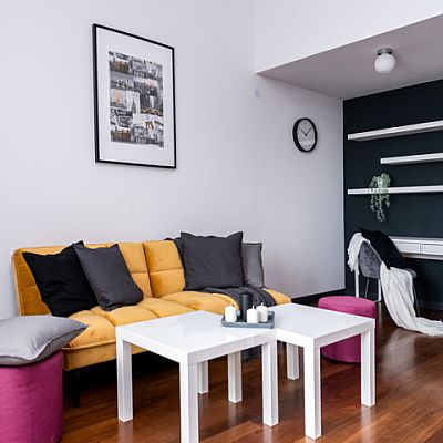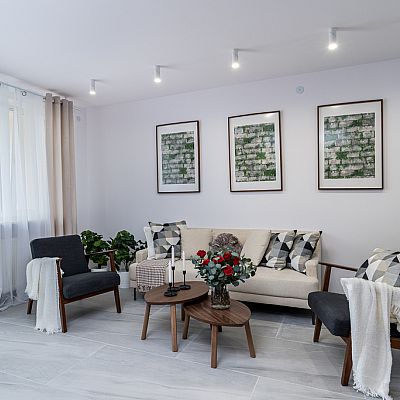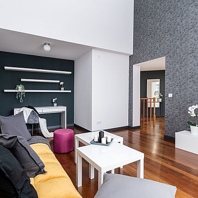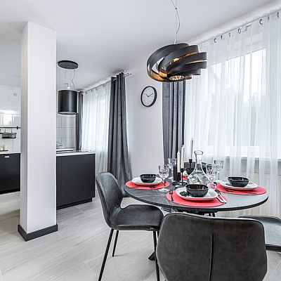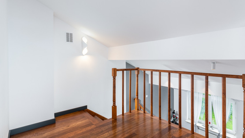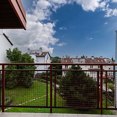 Na podłodze w pokojach położona deska podłogowa. Z elegancko wykończonego salonu jest wyjście na balkon.