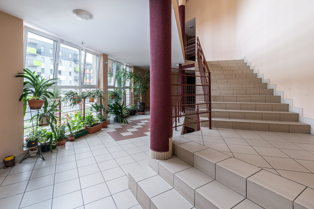 Budynek, w którym mieści się apartament, jest zadbany i ocieplony, w kameralnej, niskiej zabudowie. W pobliżu sporo miejsc parkingowych dla mieszkańców. Klatka schodowa jest czysta i schludna.