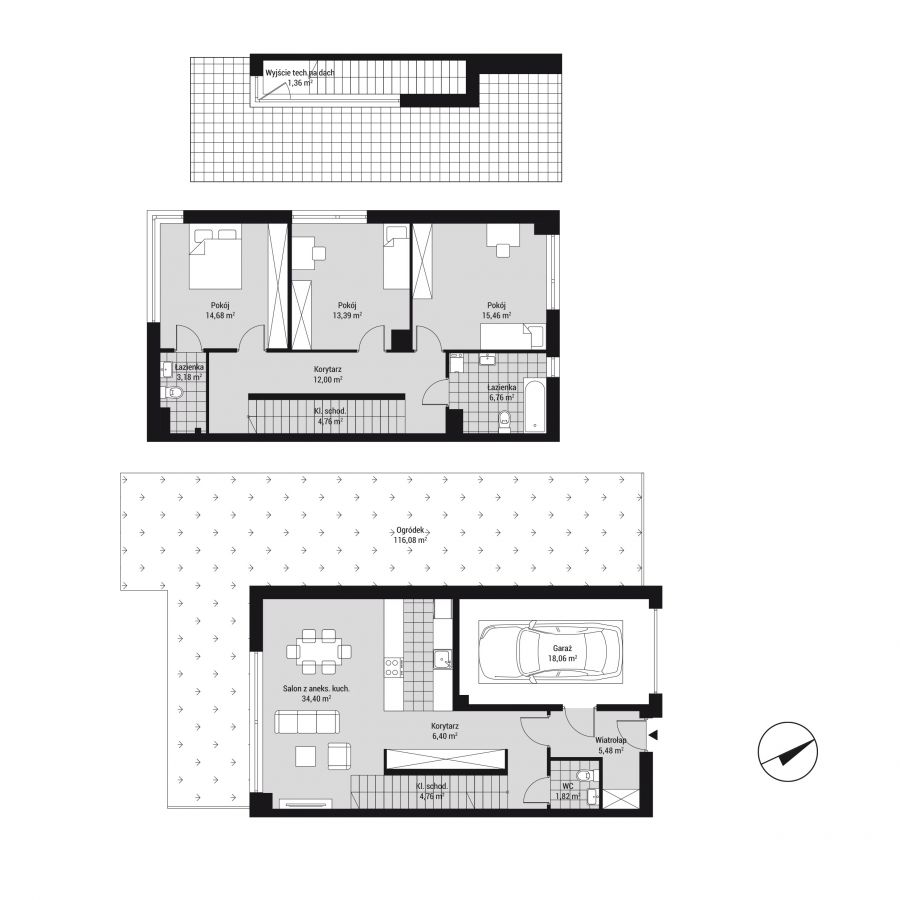 Do mieszkania przynależy również garaż wewnętrzny o powierzchni 18,06 m2 oraz ogródek o powierzchni 116,08 m2.