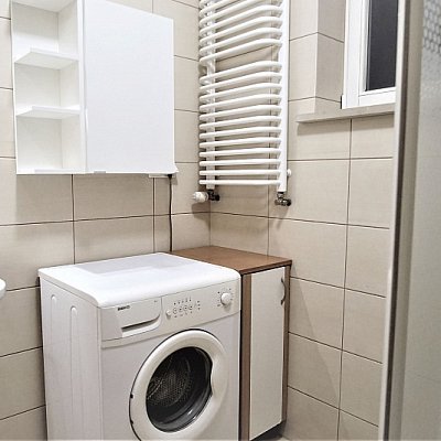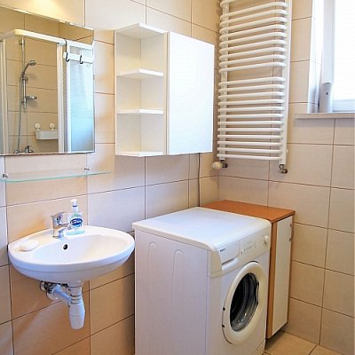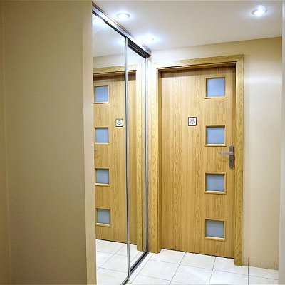 - W łazience znajduje się kabina prysznicowa, toaleta i pralka. A w przedpokoju duża szafa wnękowa z lustrzanymi drzwiami na odzież i obuwie. CENA: