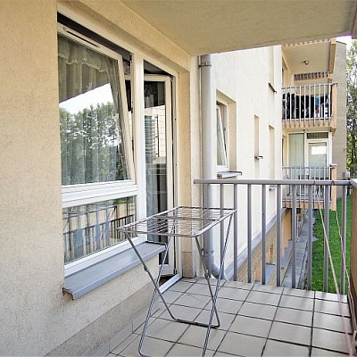 Dwupokojowy, przestronny apartament o powierzchni 50 metrów znajduje się na wysokim parterze/ 1 piętrze 4 piętrowego ogrodzonego budynku z ochroną.