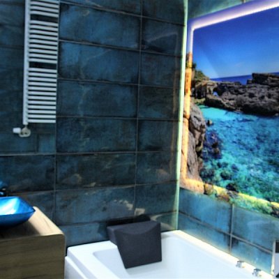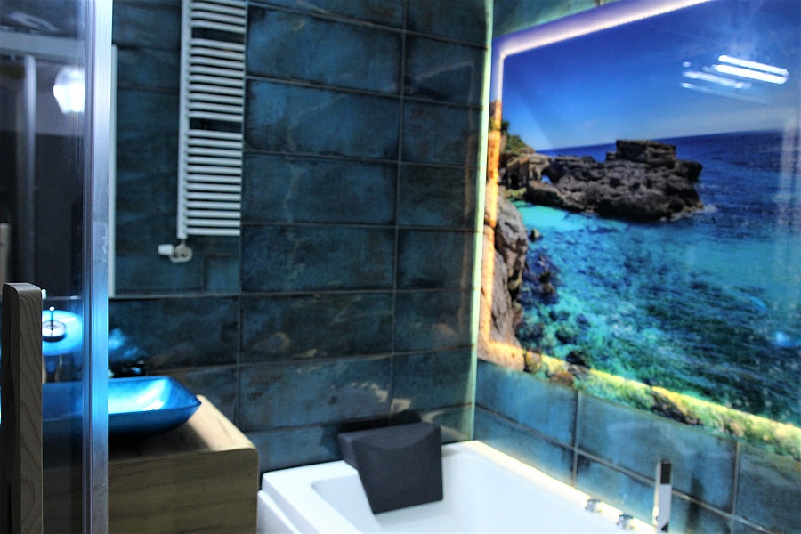 W drugiej łazience znajduje się, wanna z hydromasażem, umywalka z lustrem i szafkami, sauna oraz WC.