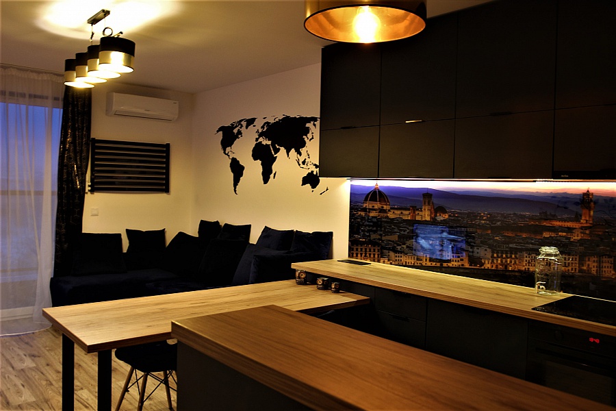 Mieszkanie znajduje się na Krakowskich Klinach. Dojazd samochodem do ścisłego centrum zajmuje do 15 minut, 200 metrów od mieszkania znajduje się przystanek autobusowy , skąd szybko dojedziesz do niemal każdej część miasta. Wokół mieszkania znajdują się tereny zielone, w pobliżu jest nowoczesny plac zabaw, boiska do piłki i kosza, osiedlowy sklep, przedszkole, żłobek.