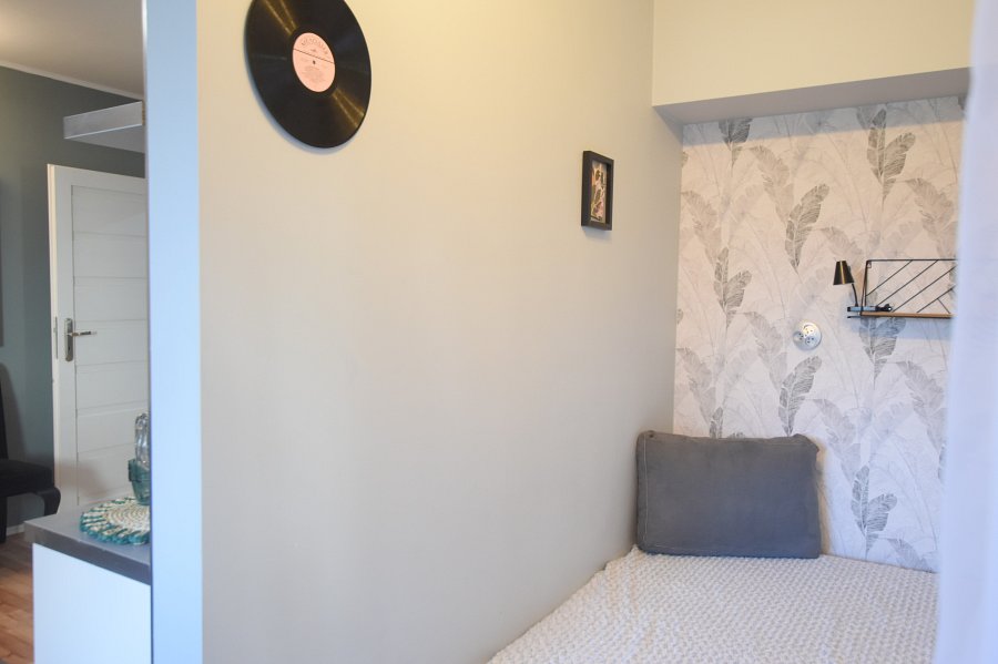 wydzielona strefa sypialna z wygodnym dwuosobowym łóżkiem.