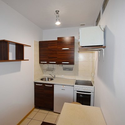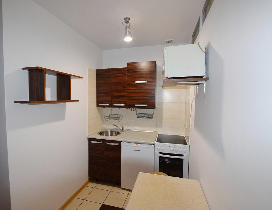 - kuchni wyposażonej w meble kuchenne, kuchenkę elektryczną z piekarnikiem, zlewozmywak, okap, mikrofalówkę oraz lodówkę.