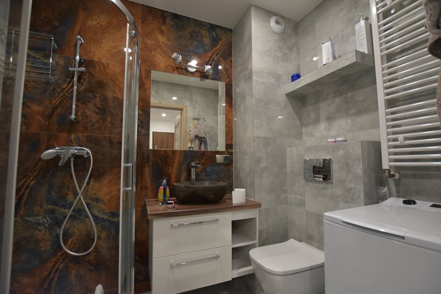 Łazienka: prysznic, pralka
