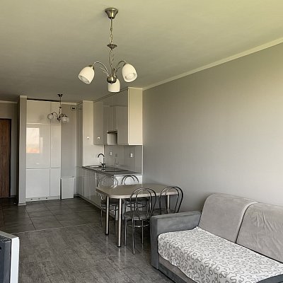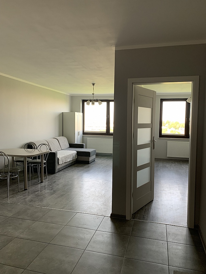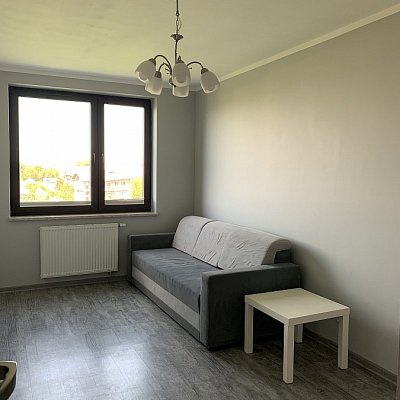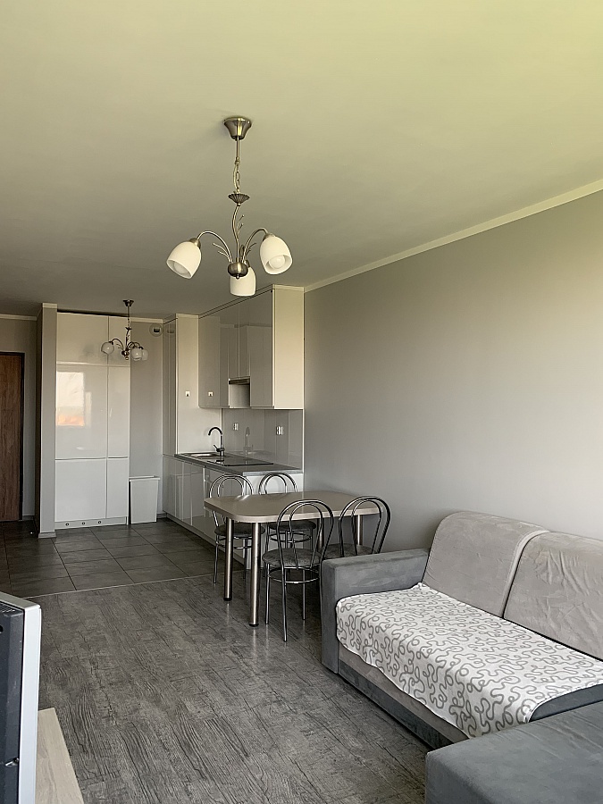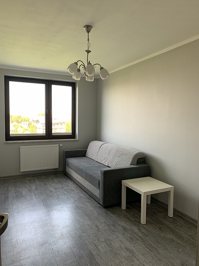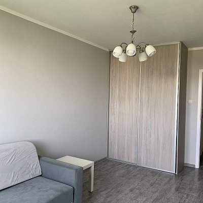 Sypialnia wyposażona jest w rozkładaną sofę oraz szafę, która pomieści wszystkie niezbędne rzeczy, z okna w sypialni mamy piękny widok na miasto.