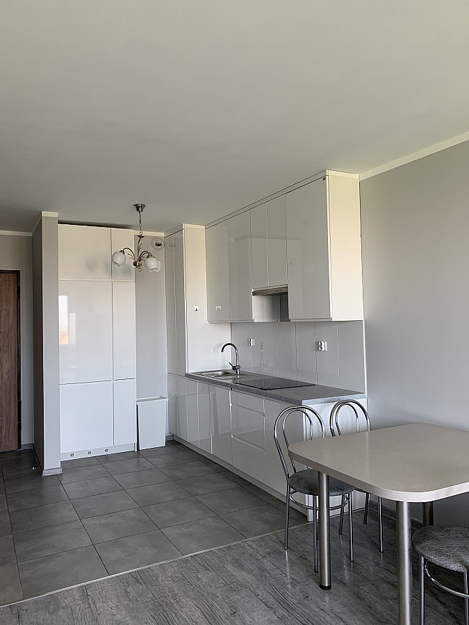 Kuchnia wyposażona jest w niezbędny sprzęt do funkcjonowania taki jak: lodówka, piekarnik, zmywarka, zlewozmywak oraz okap.